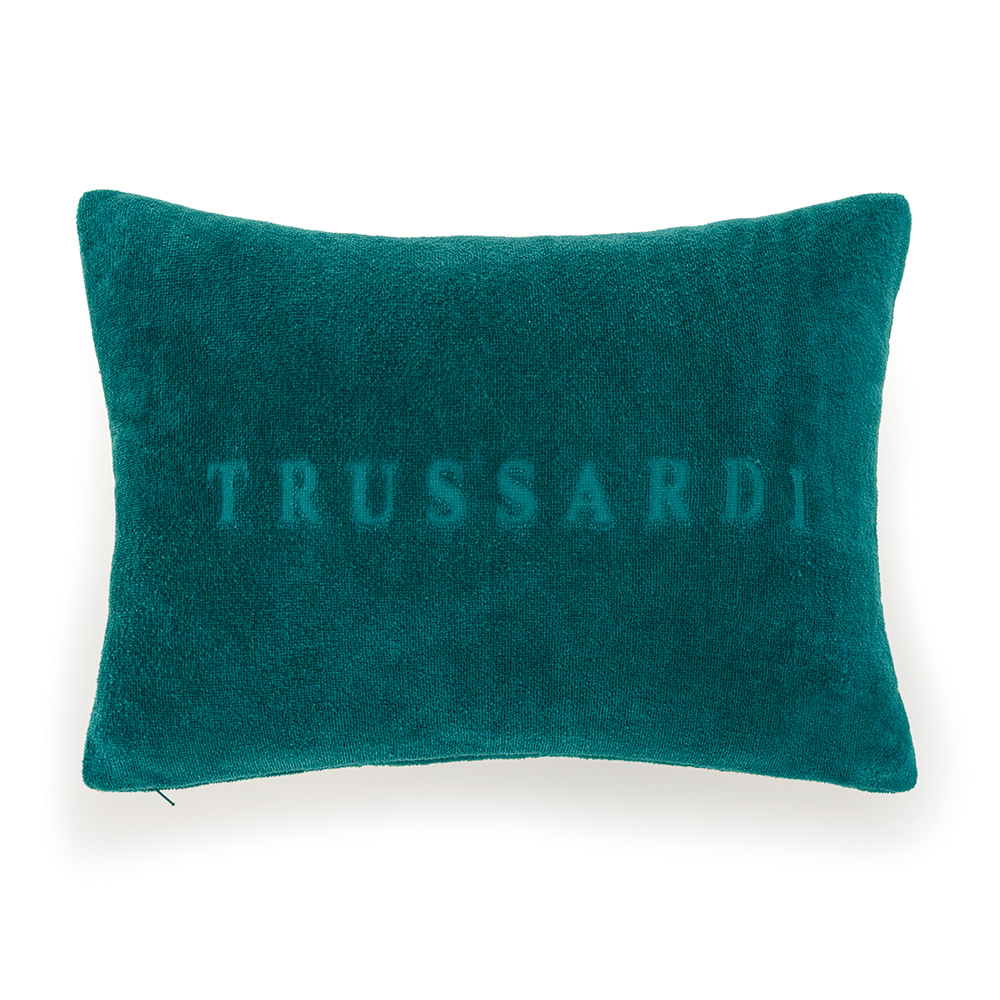 Almofada em veludo com logo em jacquard em alto e baixo relevo