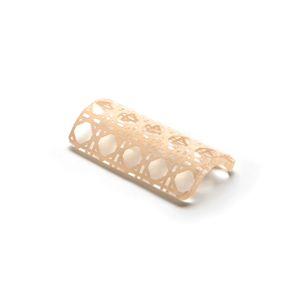 O Apoio de Talher Vienna é uma peça que combina praticidade e um toque decorativo inspirado na elegância vienense. Este suporte para talheres é feito de acrílico com um padrão de corte a laser que não só decora a peça, mas também permite que os talheres sejam apoiados de forma higiênica e estilosa. Seu design é perfeito para evitar que os talheres entrem em contato direto com a superfície da mesa, mantendo a área de refeição limpa e organizada. O Apoio de Talher Vienna traz sofisticação e funcionalidade para o dia a dia ou ocasiões especiais, complementando qualquer conjunto de mesa com sua estética charmosa e clássica.