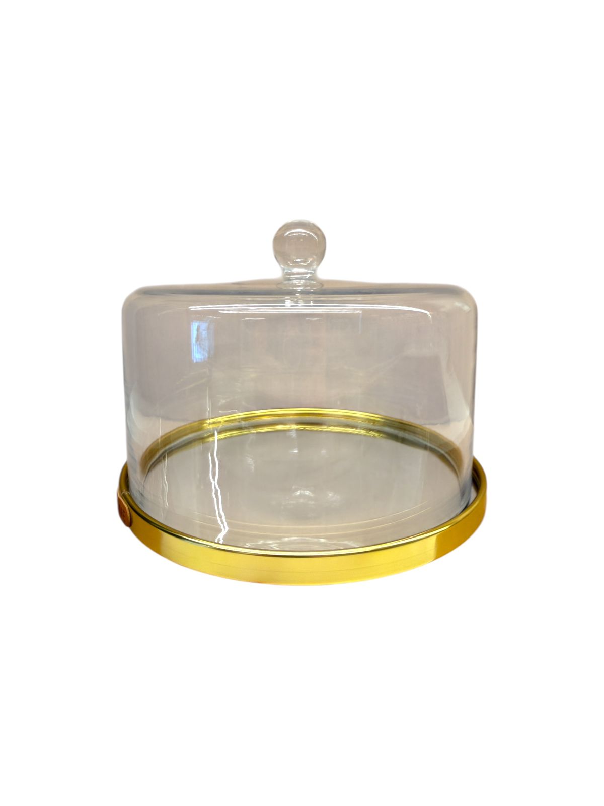 Apresente suas sobremesas com elegância e praticidade usando esta boleira de 23cm, com tampa transparente em vidro e base em metal dourado resistente.