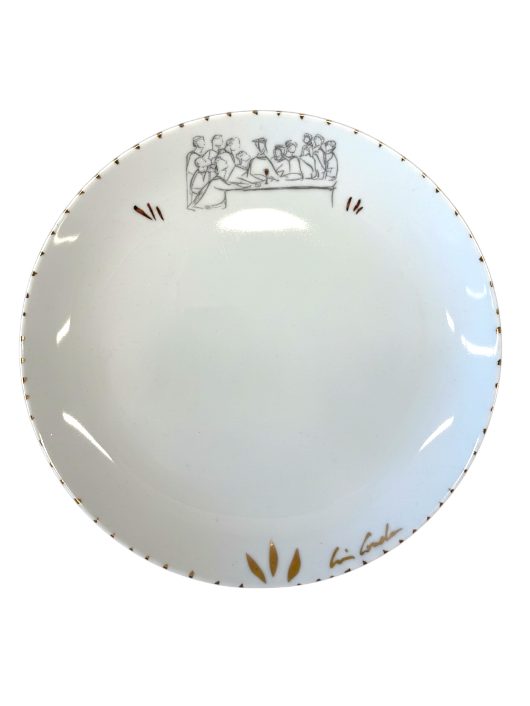 O Conjunto de 4 Pratos Sobremesa Santa Ceia é uma criação da renomada artista plástica brasileira Cris Conde, que num momento de inspiração fez esta releitura de fé através de seus traços e estilo próprio, eternizando este sublime momento sagrado com seu sensível olhar. A pedido de Le Deccor Home, a fim de dar exclusividade e sofisticação às peças, Cris fez um estudo e recriou com intervenção de ouro, folhagens delicadas, um verdadeiro presente para clientes Le Deccor Home eternizarem sua fé através destas delicadas porcelanas.