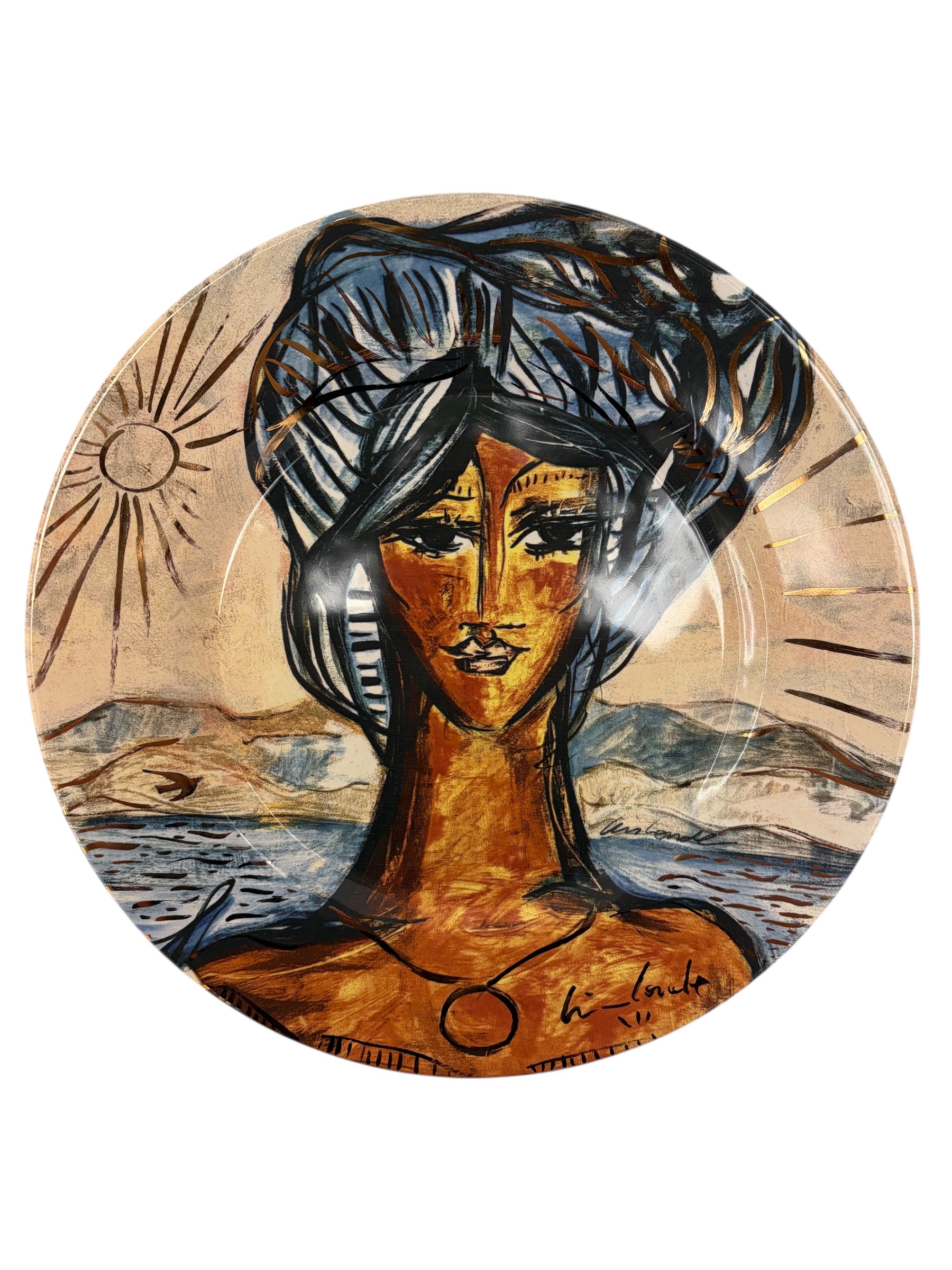 O Conjunto de pratos rasos "Simone" faz parte da Coleção Maré Mansa, da renomada artista plástica Cris Conde. Era uma coleção de quadros que foi desenvolvida em Ilha Grande, Rio de Janeiro, onde a artista viveu por um período e trouxe vida às figuras femininas (marca registrada da artista) que juntamente ao mar e suas nuances, serviram de inspiração para esta série maravilhosa de arte. Pensando em aproximar a sensibilidade e poesia da arte, para o cotidiano, Cris decidiu imprimir fragmentos dessa arte numa coleção de pratos rasos.