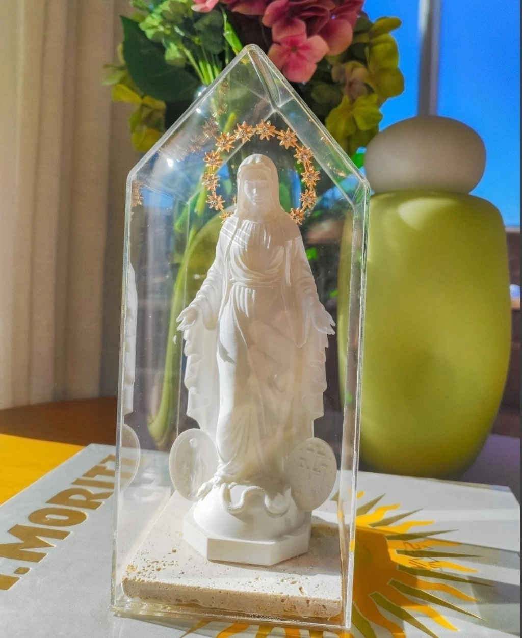 A cúpula Medalha Milagrosa branca é um acessório elegante que protege e valoriza a imagem da medalha. Com dimensões de 12x12x28cm, oferece uma cobertura ideal para destacar a peça com segurança. Fabricada em material resistente, mantém a imagem livre de poeira e danos.