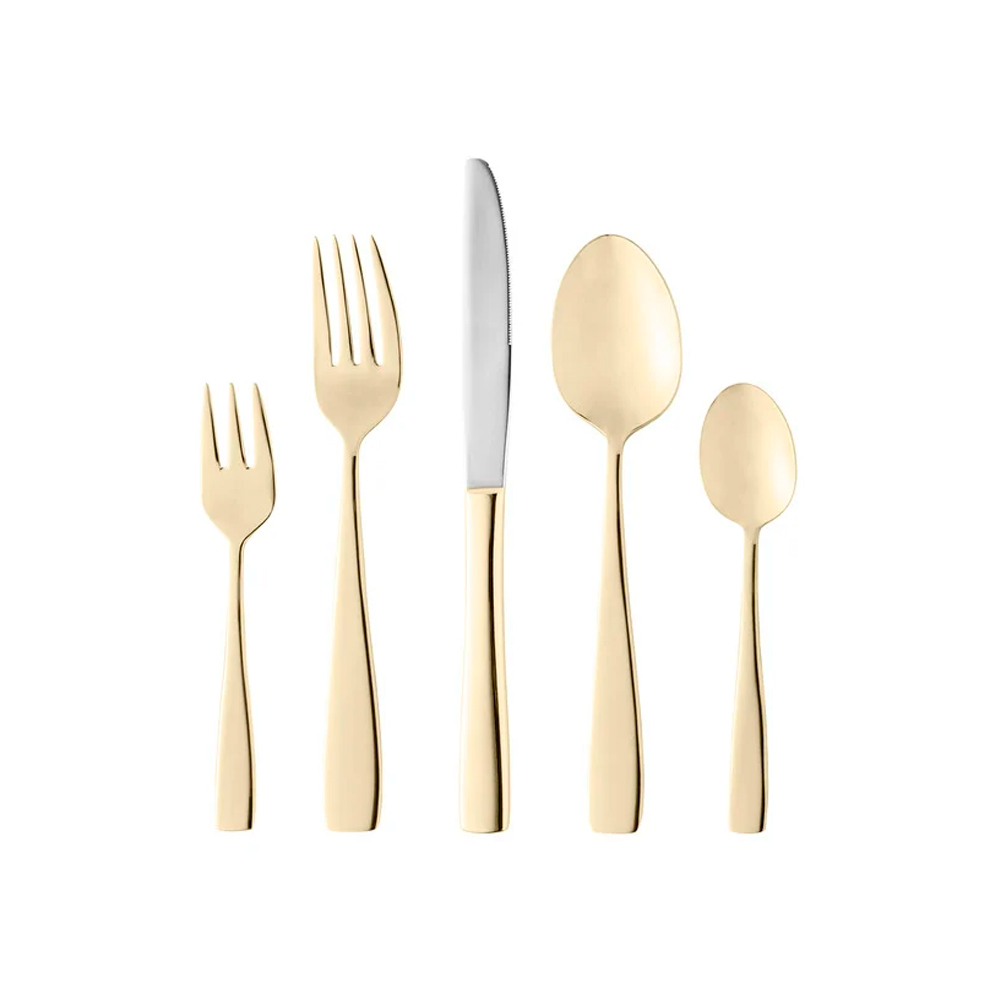 Este conjunto é perfeitamente equilibrado, com um design que une o clássico ao contemporâneo, garantindo que seja tanto prático quanto esteticamente agradável. O acabamento dourado não é apenas belo, mas também resistente, assegurando que os talheres mantenham a sua aparência deslumbrante ao longo do tempo.
