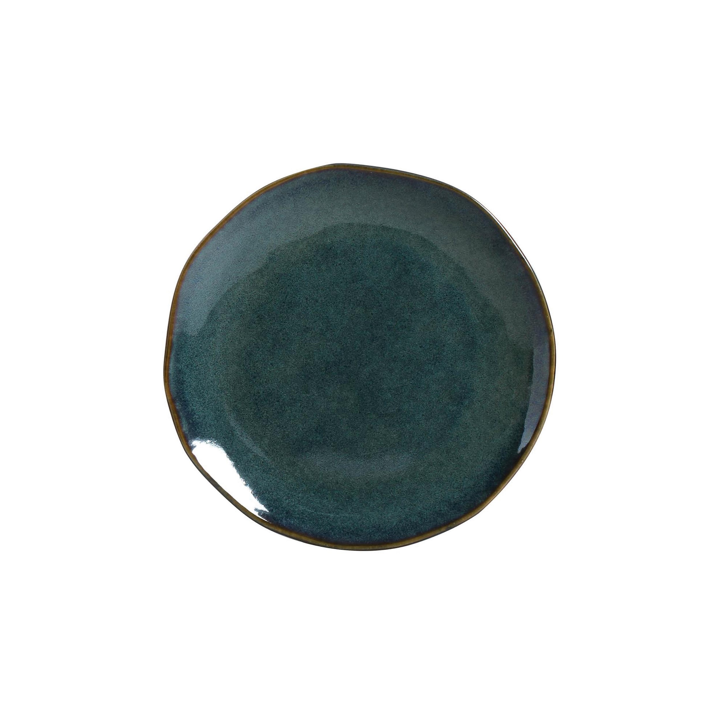 O Prato de Sobremesa Orgânico Oceano é uma bela peça cerâmica com um acabamento esmaltado que captura as nuances do mar. A paleta de azuis e verdes em um fundo escuro com toques de marrom ao redor das bordas evoca a sensação de estar olhando para as águas profundas e calmas do oceano.