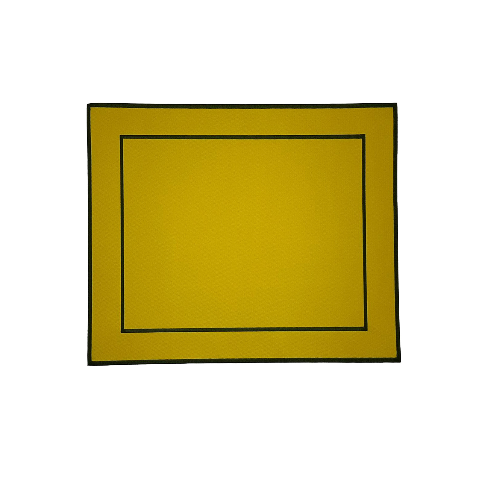 Composição: 01 Lugar Americano Minimal Amarelo Bordado Verde Musgo