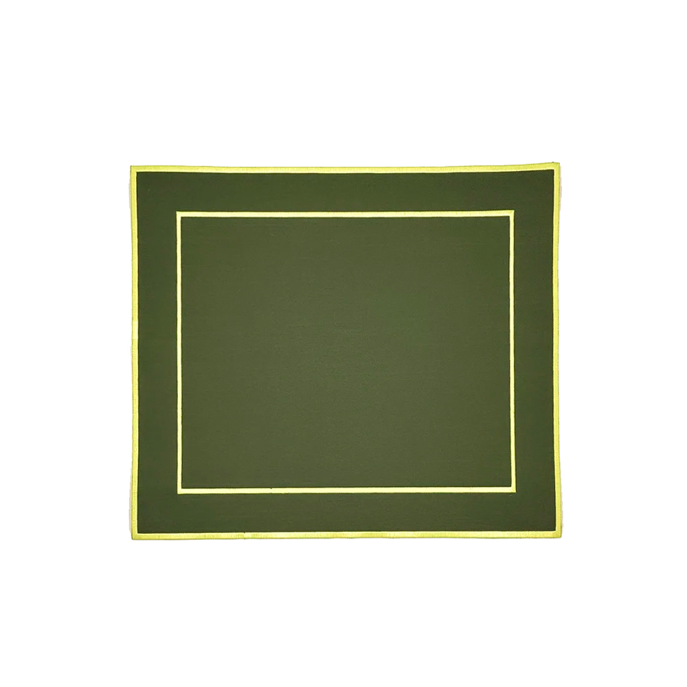 Composição: 01 Lugar Americano Minimal Musgo Bordado Amarelo