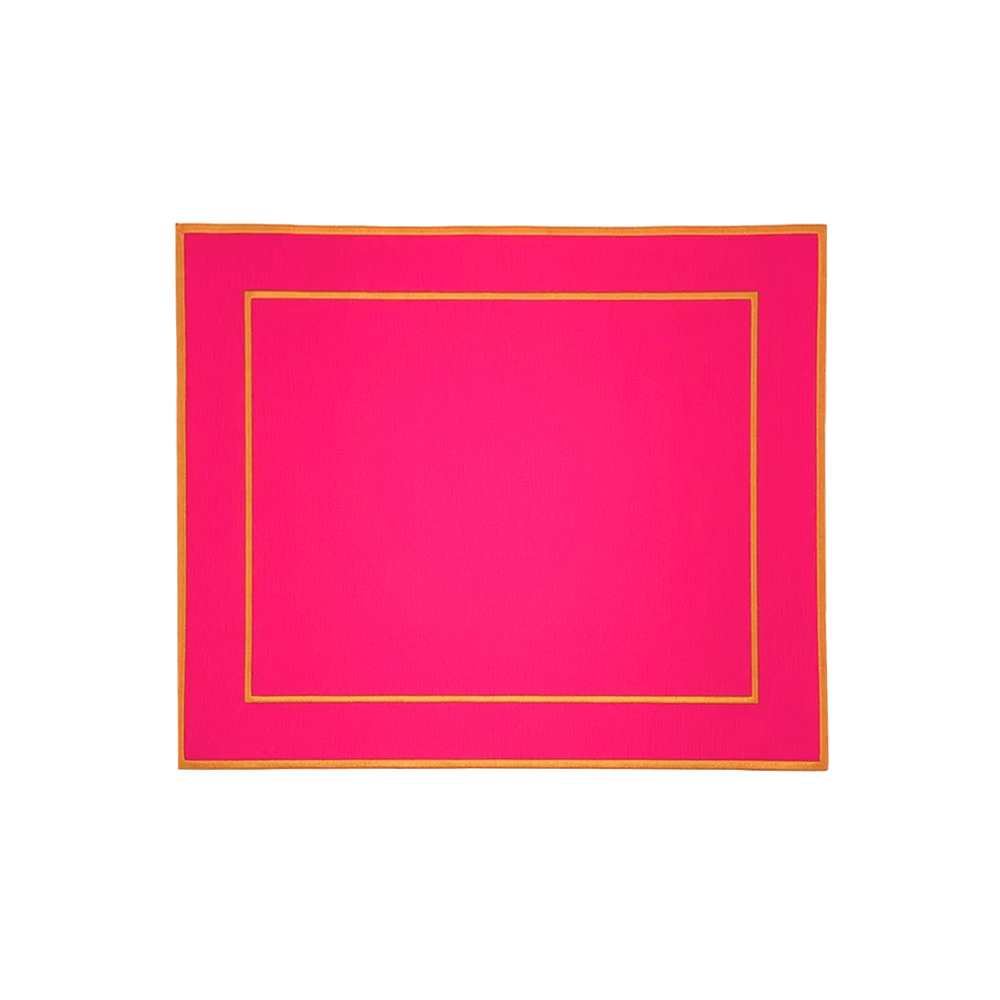 O Lugar Americano Minimal Pink Bordado Laranja é uma peça que combina simplicidade e ousadia. Seu design minimalista é realçado pela combinação vibrante do rosa pink com detalhes em laranja, criando um contraste visual que pode tanto complementar uma decoração moderna quanto ser o destaque em uma mesa mais neutra.