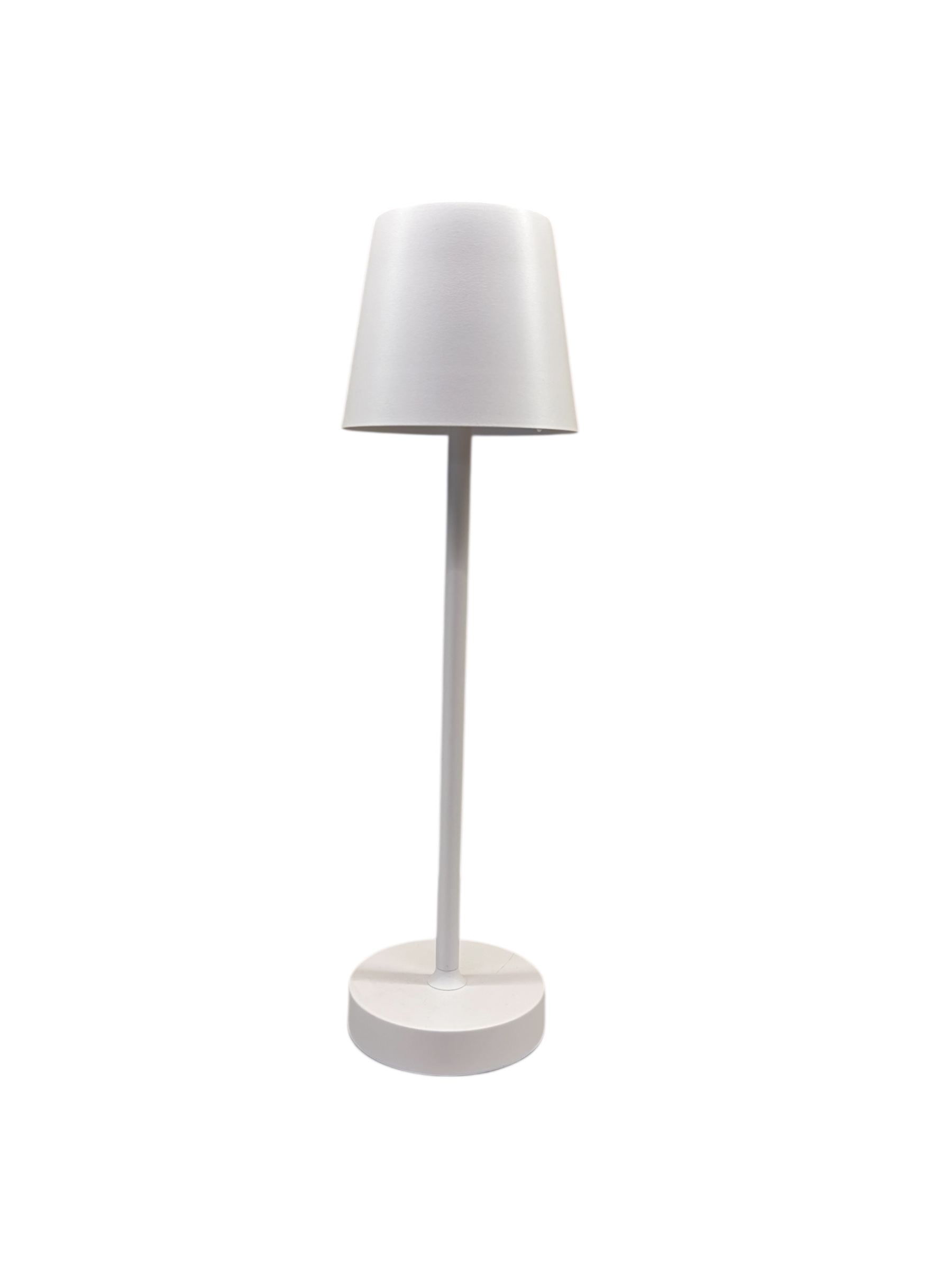 Luminária em metal pintado em branco, com 3 variações de tonalidades de LED, recarregável (vem com carregador)