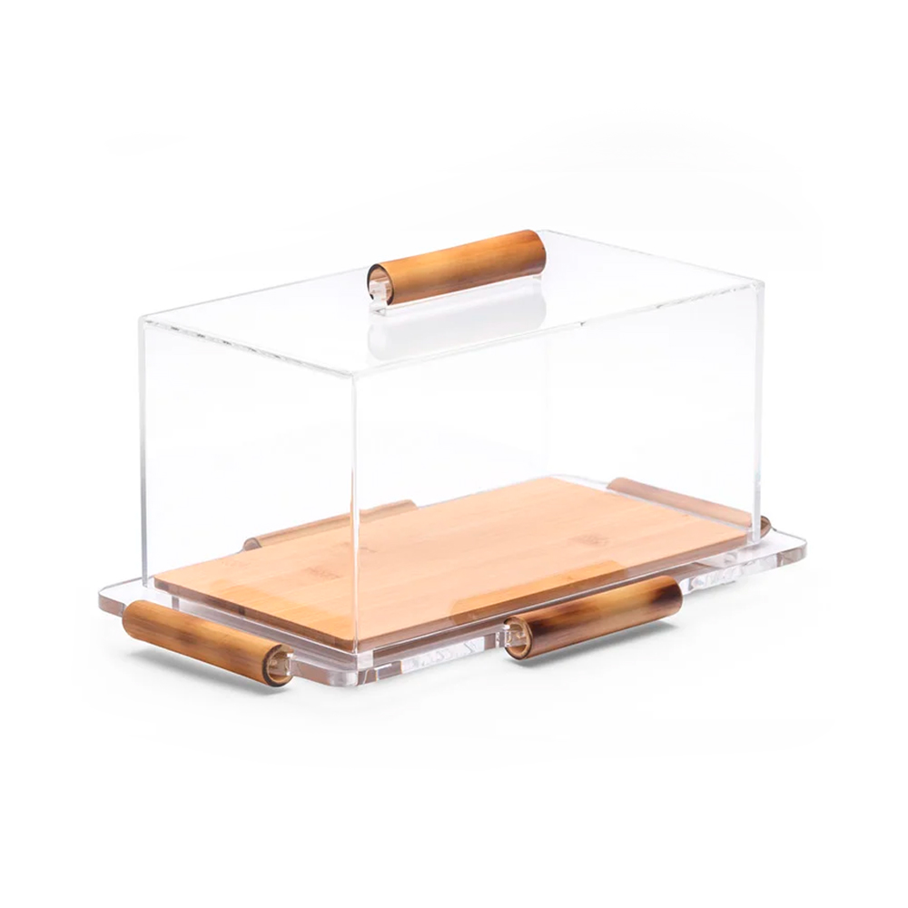 Este elegante Porta Frios Bambu é o complemento ideal para servir e exibir uma seleção de frios com estilo. A base de bambu natural proporciona uma superfície resistente e visualmente atraente, enquanto a tampa de acrílico transparente assegura a frescura dos alimentos. Com alças de bambu que facilitam o transporte, este porta frios é perfeito para a conservação e apresentação de uma variedade de carnes, queijos e aperitivos. Seja para um brunch, um coquetel ou para o uso diário, esta peça combina a praticidade com a beleza do design natural, tornando cada refeição uma experiência especial.