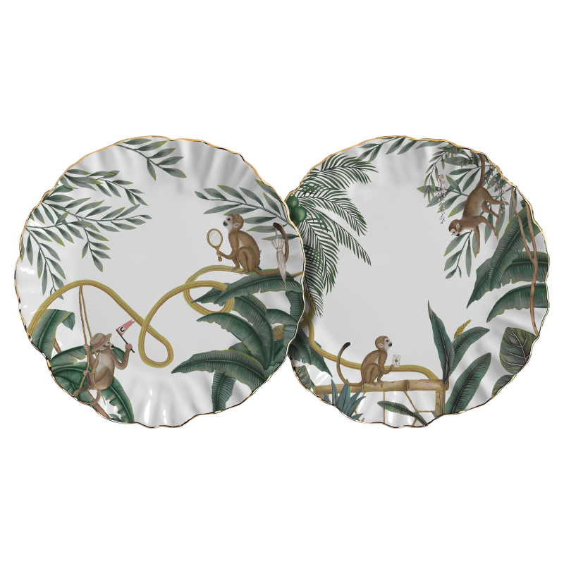 PRATO RASO PLAYFUL MONKEYS FUNDO BRANCO