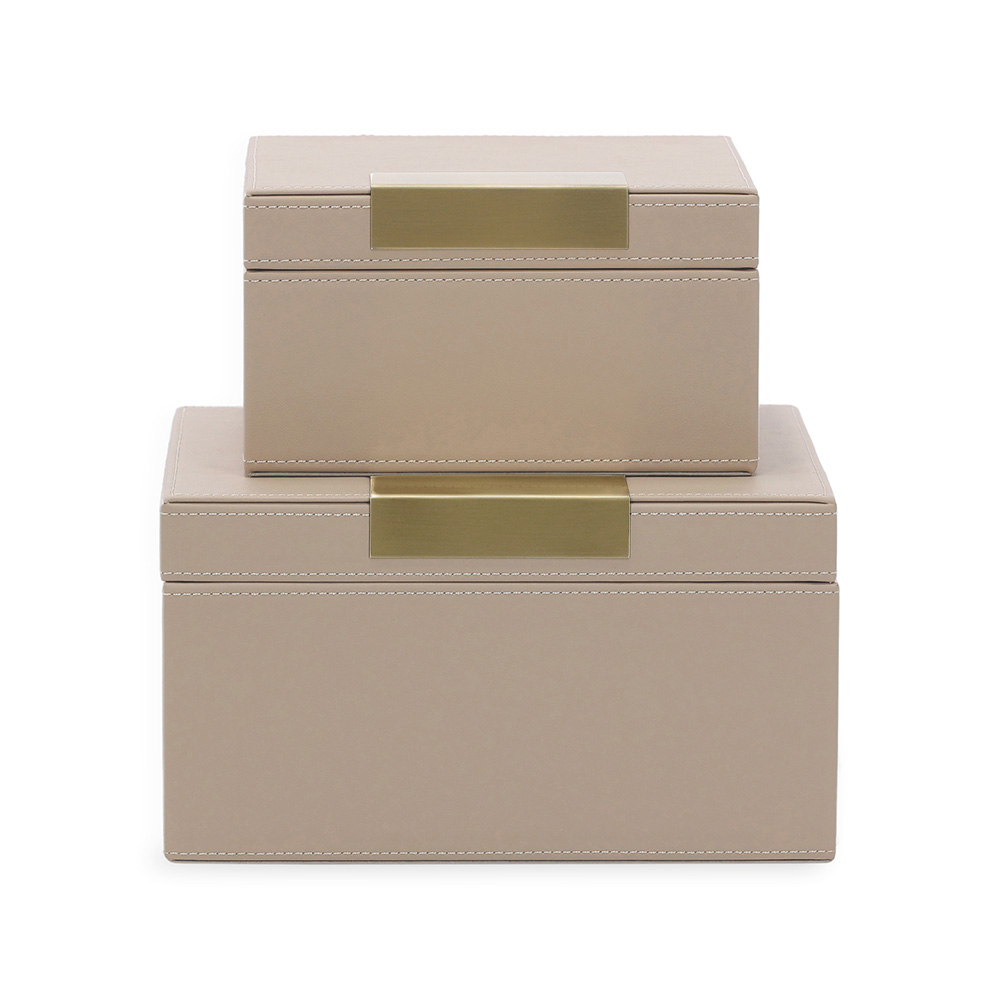 O Set de Caixas Fendi é um conjunto composto por 2 caixas contemporâneas e elegantes. Com seus formatos quadrados, estruturas em mdf revestidadas cuidadosamente em PU nas cores fendi e detalhes em dourado, estas caixas são perfeitas para decorar de forma minimalista ou como charmosos organizadores em seu ambiente.