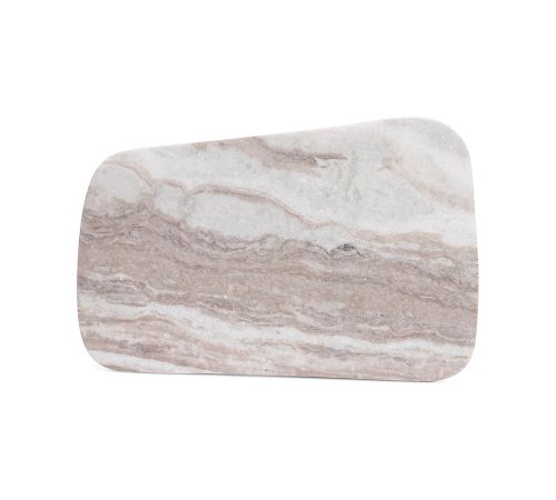 Feita em mármore natural com acabamento polido proporcionando uma superfície firme e estável para a preparação de alimentos. Medidas aproximadas de 35 cm (comprimento) por 23 cm (largura) e 2 cm (altura), adequada para diversas funções na cozinha.